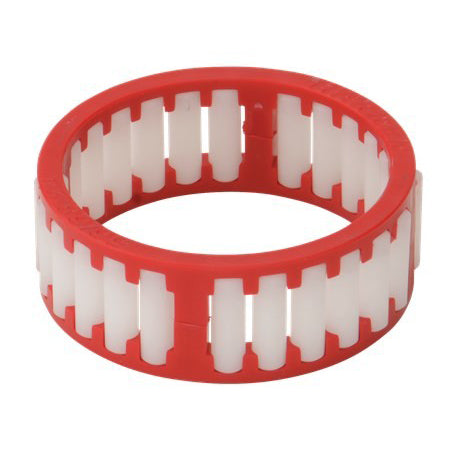 High-strength composite roller bearings reduce friction under load. Snap-fit design keeps bearings captive when drum is removed for service.